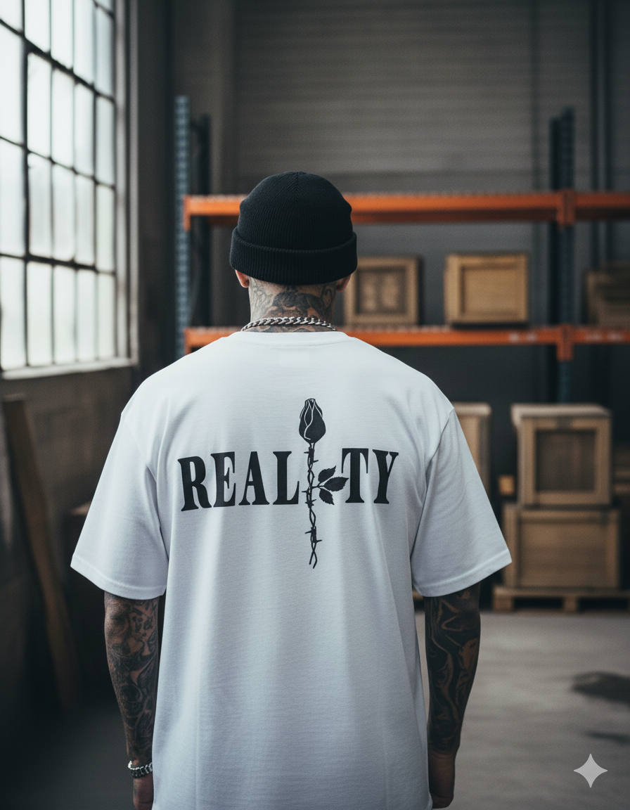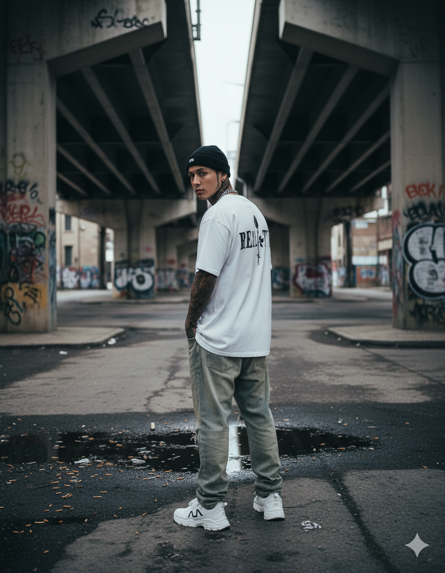 Camiseta Oversize confeccionada en tela burda premium de alto gramaje, entre 250 y 280 gramos, que ofrece una caída estructurada y una textura robusta sin sacrificar comodidad. Presenta un estampado frontal en dft de alta definición y acabados resistentes al uso cotidiano. Los cortes en el hombro, elaborados en tela entonada con el cuello, aportan carácter y un estilo distintivo.